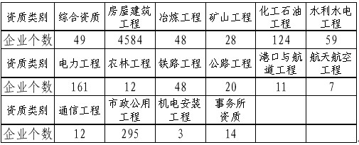 *本統計涉及專業資質工程類別的統計數據,均按主營業務劃分。